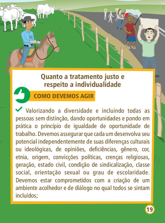 Nossa conduta, norteada pelos princípios éticos, ultrapassa as barreiras das fazendas, envolvendo as comunidades localizadas no entorno das unidades de produção, nas quais participamos ativamente em movimentos e projetos sociais e humanitários.